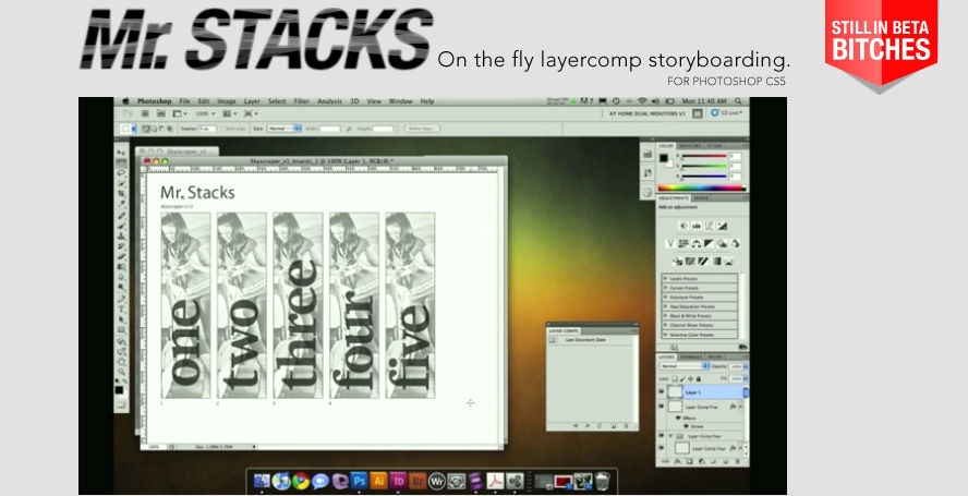 Mr.Stacks is a handy Photoshop script that rapidly generates storyboard, layout, PDF for printing and sharing with others.