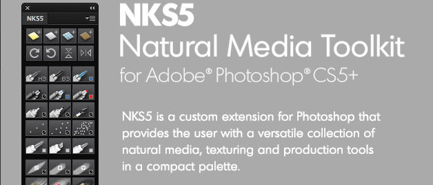 NKS5 is a custom plug-in for Photoshop that provides a new panel in Photoshop CS5 and above, allowing you to create documents that look like natural paper backgrounds. Quickly grab realistic pencils, pens and more tools from a digital toolbox.